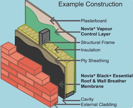 Novia 1000g Vapour Control Layer is a traditional specification, single-ply, non-laminated, virgin grade blown polythene material for use as an air leakage barrier and vapour control layer (AVCL) in insulated wall, roof and floor applications. Novia 1000g must be installed in conjunction with Novia ..