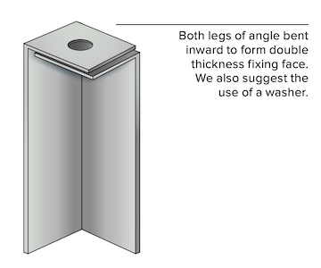 The angle can be cut and folded inwards to provide an alternative fixing detail. This technique involves snipping the steel and folding both legs of the angle inward, creating a doubled-up, reinforced fixing face. A suitable fixing (e.g., a thunderbolt or anchor) must then pass through both legs of the angle into the structural soffit.